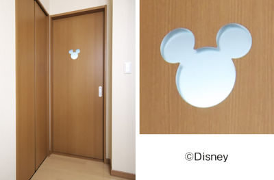 キッチンから洗面・浴室へと向かう扉は、ミッキーマウスシルエットの内装ドア「リビエ」。お母様がひと目惚れされただけあって、『目にするたびに楽しい気分になれるのよ』と喜んでおられます。