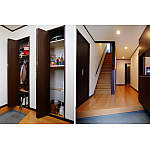 靴や傘などは右側の玄関収納「コンポリア」に、お子様の外出用のものは左側の収納に。学校から帰ったら、ランドセルや楽器、上着などをすぐに片付けられます。大好きな昆虫の飼育箱もこのコーナーに。