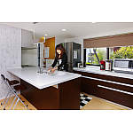 ボタン操作で火力調節などをできるIHクッキングヒーターは、使いやすいうえにお手入れもラクラク。背面の壁にはキッチンシューターを設置。生ゴミを入れれば外のダストボックスに捨てられるようにしました。