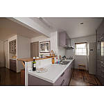 キッチンとダイニングの間の壁を取り払い、対面型のシステムキッチン「リビングステーション」にリフォーム。動線がよくなり、キッチンそのものの面積も拡げたため、明るく動きやすい空間になりました。上品なカラーは奥様のお気に入りです。