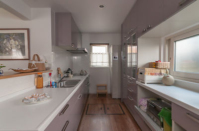 キッチンとダイニングの間の壁を取り払い、対面型のシステムキッチン「リビングステーション」にリフォーム。動線がよくなり、キッチンそのものの面積も拡げたため、明るく動きやすい空間になりました。上品なカラーは奥様のお気に入りです。