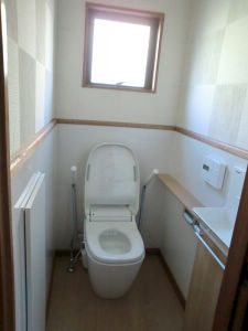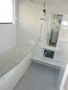 お風呂・脱衣室・トイレの改修工事をさせていただきました。昔ながらのタイル貼りのお風呂で、冬場は寒く浴槽のお湯もすぐ冷めてしまい、タイルの目地にカビも生えやすくお施主様のご両親もご年配になってきたということで、お手入れがしやすく温かいお風呂をご希望されていました。