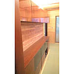 天井・壁・床 全てに無垢材を使用し木の持つリラクゼーション効果とあたたかさを満喫していただき、その中で、キッチン~ダイニング~脱衣室・寝室の導線にも気を付け出入口も車いすが十分使える寸法で提案しました。また限られた台所スペースも天井高を最大限に上げ化粧梁を見せることで空間に奥行を持たせ、壁埋め込み照明で遊び心も取り入れました。寝室につながる廊下の床には畳の縁のない琉球畳を使い、素足で歩いてもあたたかく転んでも安全なように配慮しました。また、この畳の廊下にキュビオスとクローゼットを配置することで廊下を納戸代わりに使っていただけるようにしました。