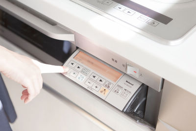 IHクッキングヒーターは料理が吹きこぼれると自動的に停止し、その後のお掃除もさっとふくだけ。お手入れがラクラクで奥様も大助かりだとか。