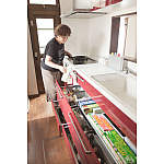 パナソニックのショウルームでリフォムスのキッチンを見て、PaPaPaシンクの便利さや収納量の多さにナットク! ご主人が価格面と機能性を考え合わせ、リフォムスに決められました。スモーキーレッドのカラーを選んだのもご主人。ご夫婦ともお気に入りです。