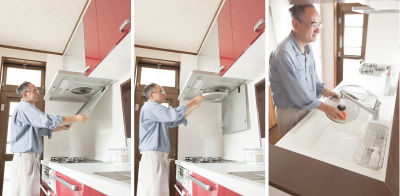 換気扇のお掃除はご主人の担当。フィルターは洗剤なしのお水だけでさっと洗え、しつこい油汚れがありません。「おかげで面倒な換気扇掃除から解放されました」