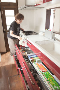 換気扇のお掃除はご主人の担当。フィルターは洗剤なしのお水だけでさっと洗え、しつこい油汚れがありません。「おかげで面倒な換気扇掃除から解放されました」