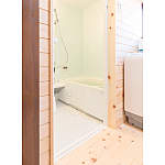浴室と同時に、洗面脱衣所の床や壁も群馬県産のヒノキの無垢材でリフォーム。自然と温泉を愛するK様にとって、お風呂上がりも心地よく過ごせる、あたたかみのある空間になりました。