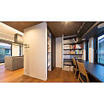 キッチンの裏側に、お子様が勉強できるワークスペースを設置。調理中でも目が届き、いつでもコミュニケーションがとれるように。天井までの大きな収納でダイニングキッチンがすっきりと片付きました。