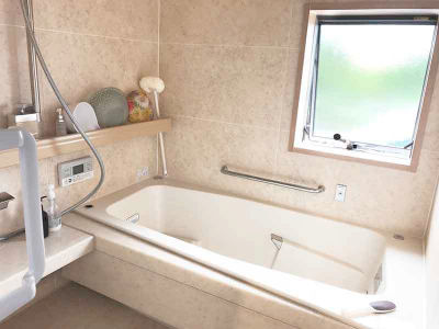 ベージュでコーディネートし、明るくやわらかい雰囲気になりました。ジェットバスや酸素美泡湯で、お仕事で疲れた体をほぐしてお肌もしっとりです(^^)。床暖房も備えているので、冬場の寒さも解消できますね♪