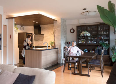 入居以来、「視界が遮られてイヤだった」というキッチンの吊戸棚を取り払い、「Lクラスキッチン」に。ご家族と会話をしながら料理や片付けができる、理想の空間に生まれ変わりました。