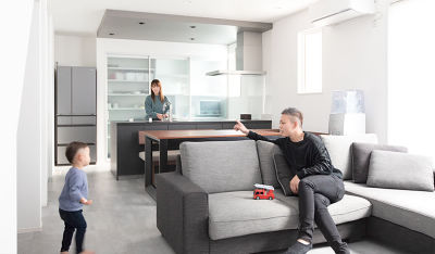お子様の成長とともに住まいが手狭に感じられ、譲り受けたご実家を建替えられることに。奥様ご希望の対面キッチンは、お子様がリビングのどこにいても目が届くので安心。広びろしたLDKで、お子様も元気いっぱい!自然と家族の笑顔があふれます。