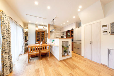 間取り変更をしてLDKを広くし、キッチンの位置を移動。家族とコミュニケーションしながら楽しく調理や団欒が出来る明るく広々としたLDKに。