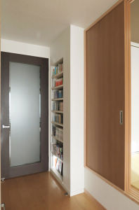 書籍もたくさんお持ちだったので、ちょっとしたスペースに造作本棚を。取合収納は余すところなく空間を利用。