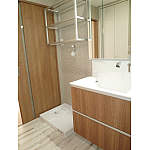 浴室横に大容量の収納を新設した。