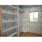 クロスもブルーの天井にイエローの柄の壁クロスを採用し暗くなりがちな空間を楽しく演出。既存カップボードもこちらに納まった。