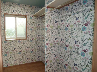 お客様のお好みで鳥や花のモチーフのクロスで明るい印象にした。