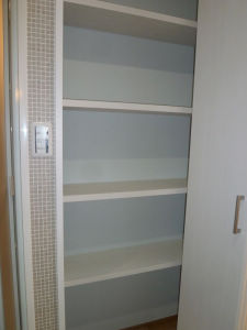 浴室横に大容量の収納を新設した。