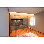 使用頻度が低かった和室は応接室に用途変更しました。将来は1階だけで生活が完結するようベッドルームとしてもお使いいただける仕様になっています。押入れ&床の間をなくしてタイルをあしらったテレビボードを造り付け。バーチカルブラインドが設置しやすいよう窓周りを工夫。仰向けになった際に眩しくないよう間接照明にするなど、快適に過ごしていただける空間になっています。
