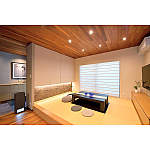 動線や収納も再構築。増築したガレージから直接出入りできるサブ玄関の北側スペースを利用し、パントリーも設置しています。使用頻度が少なかった納戸は洗面スペースに変更。その分、バスルームやトイレにもゆとりが生まれ、ガス乾燥機が置けるランドリーコーナーまで新設することができました。同じくほとんど使っていなかった和室は応接室に。将来はベッドルームとしても使えるよう壁面や窓周り、照明に工夫を施しました。シンプルながらも重厚感のあるデザインも魅力のひとつで、玄関からLDK、畳スペースまで、天井材を統一するなど、空間の一体感にもこだわっています。他にも、ベリティスのアウトセット引き戸を使ってバリアフリーを導入したり、本がお好きなご主人様がストレスなく読書できるよう照度や色温度が調整できる照明計画と、細部にまで配慮しています。これまでずっと溜め込んでこられた不満をリフォームの力で解消。これからの暮らしを思う存分楽しんでいただける「新しい棲家」が誕生しました。