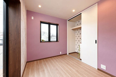 もともと3階にあった浴室を1階に移動することで3階に子供部屋3室を確保し、2階の洋室とLDKの壁を取り払いトイレを移動させることで家族5人が集える広く明るいLDKをプランしました。