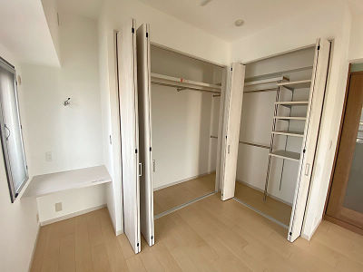 2つの洋室を繋げ、大容量のクローゼットとデスクを設け、快適な奥様の部屋にした。ロケーションも良く、快適。