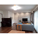 広がりのあるLDKにした。ベランダに出る入口をふさいで壁にしてTVを設置した。