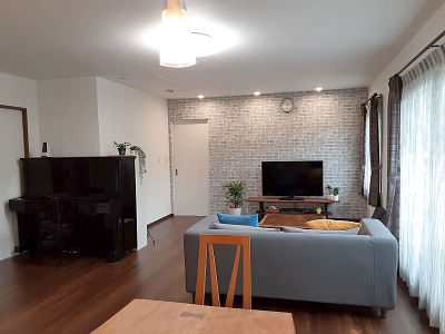 洋室をリビングに取り込んでより広い空間にした。ベランダに出るテラスサッシは塞ぎ壁にした。