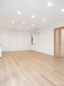 広々とした20帖のリビングダイニングです。リビングダイニングの壁の一面に、端から端までの間口の広い使い勝手の良い収納を設けることで、部屋が片付きやすく広く使う事ができます。
