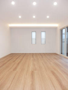 広々とした20帖のリビングダイニングです。リビングダイニングの壁の一面に、端から端までの間口の広い使い勝手の良い収納を設けることで、部屋が片付きやすく広く使う事ができます。