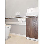 トイレ内にリフォーム用のアラウーノ専用手洗いキャビネットを設置しました。既存の給排水管を利用することで、簡単な工事で手洗い器を設置することができます。