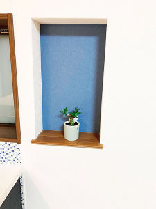 解体時に壁に空間を発見しニッチ飾り棚で空間を活用しました。