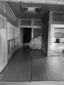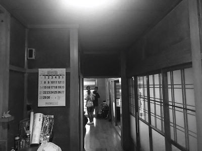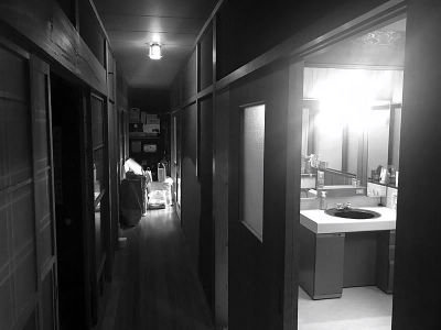 うす暗い廊下、土壁がぽろぽろと落ちる。
