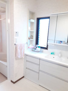 家族全員スポーツが大好き。毎日の洗濯物も多く、洗濯の物干しは大変な作業。また1階の和室で朝の身支度、制服等のアイロン掛けをします。和室は南西角部屋、冬は日差しが暖かく、夏は風が通り抜け、ごろんと横になるととても快適な空間ですが、アイロン掛を済ませた衣類、制服等の置き場になっているので、古くなった水廻りのリフォームと共に快適な住まいにしたい。との事でリフォームを依頼しました。お掃除がしやすい商品や、物の置き場所をそれぞれのサイズ、生活動線から見直してのリフォームで、快適な住まいになりました。