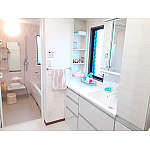 収納たっぷりの洗面化粧台と再度キャビネット。