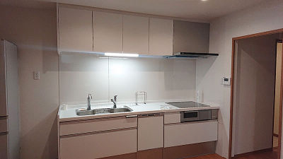 広々キッチンに大変身。ガスからIHになり安心ですね!収納もたっぷりです。
