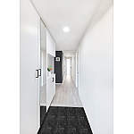 玄関ホールの閉塞感を解消するため、ホールに出っ張っている壁にアクセントカラーを取り入れました。このアクセントカラーはベースカラーのシンプルな形状を浮かび上がらせ、空間を広く見せてくれます。また、LDKと同色のアクセントカラーで統一感を持たせ、スタイリッシュなエントランス空間が完成しました!さらに、人感センサー付きのダウンライトを採用し、上質なお出迎え空間に仕上げました。