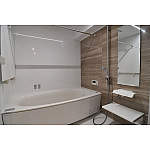 広々とした1618の浴室は、美泡湯と調光付きライン照明でリラックス空間に。