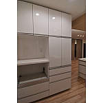 2方向から入れる洗面脱衣室がとても便利で気に入っています。朝の忙しい時間は特に助かります。暑い夏は風通し良く、寒い冬はリビングから直接お風呂場までいけるのも嬉しいです。キッチンは開放感が有り広く感じます。コーナー部分の棚は調味料等よく使うものを入れています。シンク側からもコンロ側からも取りやすく便利です。リビングや寝室の間接照明も気分に応じて明るさを変えられるので違った雰囲気を楽しんでいます。一番の希望だった広いお風呂も調光の照明や美泡湯で癒され楽しみな時間となりました。