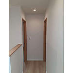 2階廊下の照明は全てダウンライトに変更。スッキリ明るくなりました。内装材も全てイデアオークにまとめました。