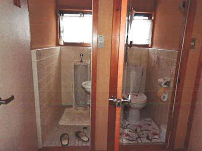 ビフォア:男性用小便器と洋式便器に分かれていた以前のトイレ。狭くて暗くて掃除もしづらく、不満だらけでした。