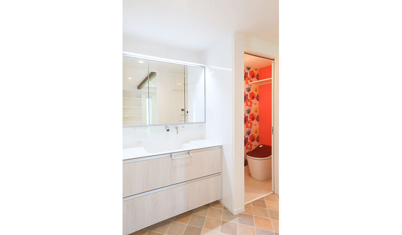 吉田 誠 リノベーションのため新たに大きな窓は取らずにできるだけ既存の開口を使って明るく広く暮らせるように設計しました。内装は明るくPOPに仕上げ、にぎやかな3姉妹が楽しく暮らせるように考えました。(現在は4姉妹だそうです)