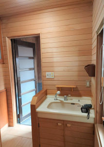 ビフォア:浴室改修のタイミングで洗面台も新調したい。