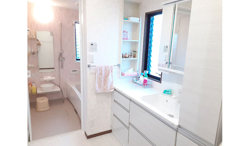家族全員スポーツが大好き。毎日の洗濯物も多く、洗濯の物干しは大変な作業。また1階の和室で朝の身支度、制服等のアイロン掛けをします。和室は南西角部屋、冬は日差しが暖かく、夏は風が通り抜け、ごろんと横になるととても快適な空間ですが、アイロン掛を済ませた衣類、制服等の置き場になっているので、古くなった水廻りのリフォームと共に快適な住まいにしたい。との事でリフォームを依頼しました。お掃除がしやすい商品や、物の置き場所をそれぞれのサイズ、生活動線から見直してのリフォームで、快適な住まいになりました。