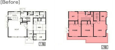 親世帯の住居の敷地に子世帯の住まいを増築。