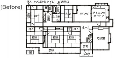 和室が多く使い勝手のわるかった間取りを大幅に変更。