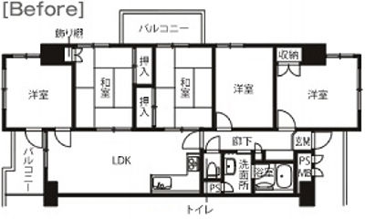 仕切られた3部屋とLDKを大空間のワンルームに。