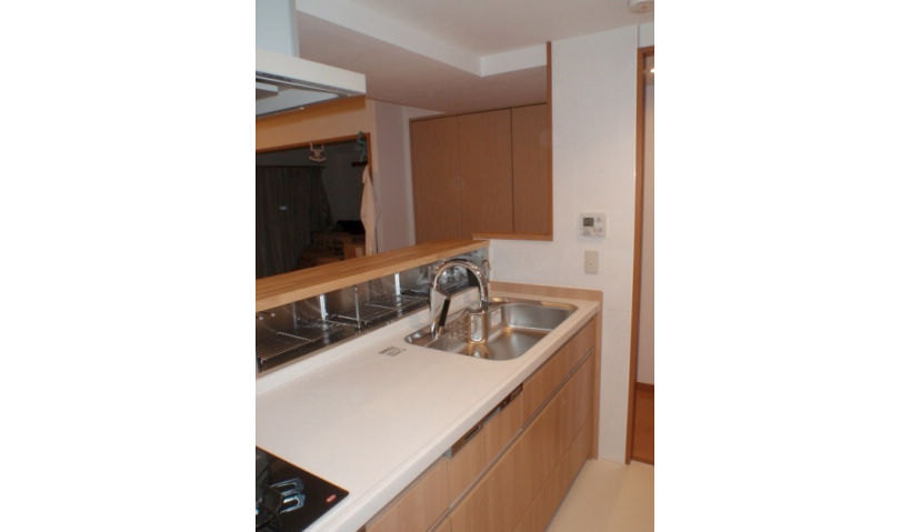 築12年の分譲マンションを中古購入し、今回水廻りの交換と全室のクロス貼替をしました。キッチンは明るくリビングが見渡せるようにし、収納棚もキッチンと同じシリーズで揃えています。また、設備機器は最新のものを選び、特にユニットバス