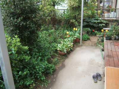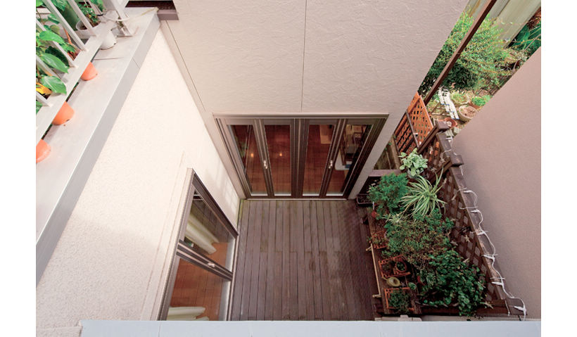 アフター:増築したことで出来た、中庭のスペース。まわりの視線を感じることのない、プライベートな空間が開放的です。