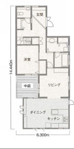 アフター:増築したことで、リビングダイニングを広くなりました。また、増築したことでうまれたスペースに中庭を作り、より開放的で明るく風通しのよいお家になりました。